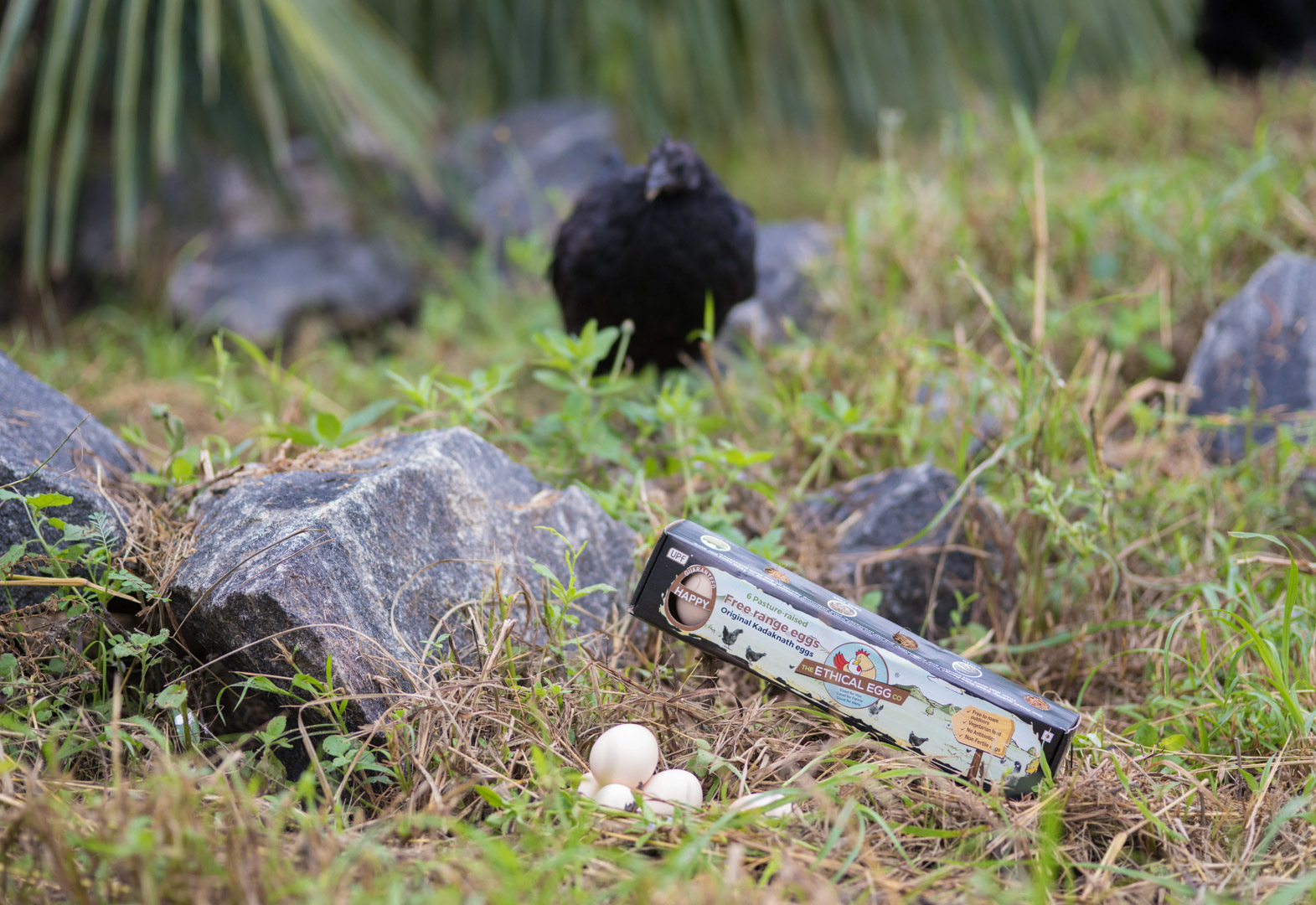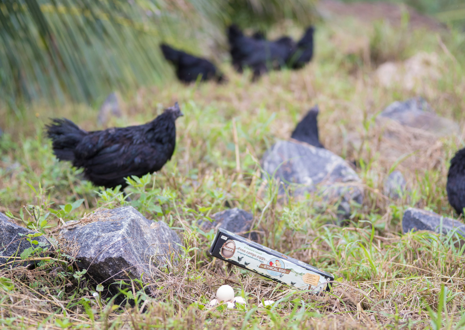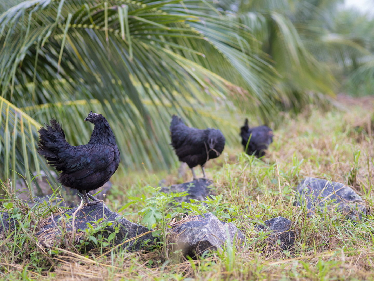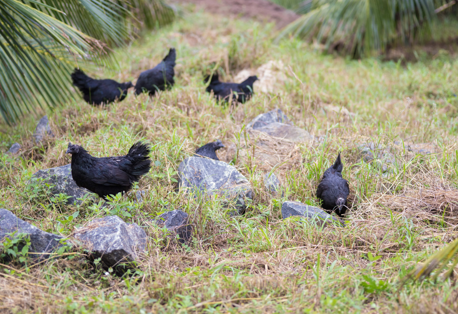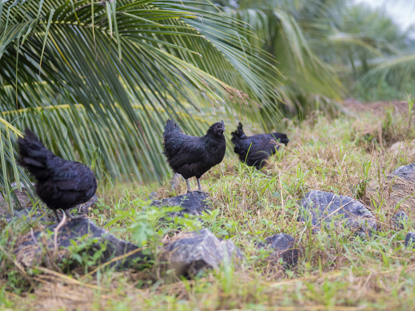 Our finest quality Kadaknath Eggs, are laid in farms with a maximum density of 1,000 hens per acre. This gives each hen 4 sq. mtr. space in the outdoors. Our hens spend their days foraging through pastures full of natural grass, pecking at fruits and enjoying their time chasing bees and insects. They relax under the shade of our coconut trees during the day and freshen up with dust baths every day.